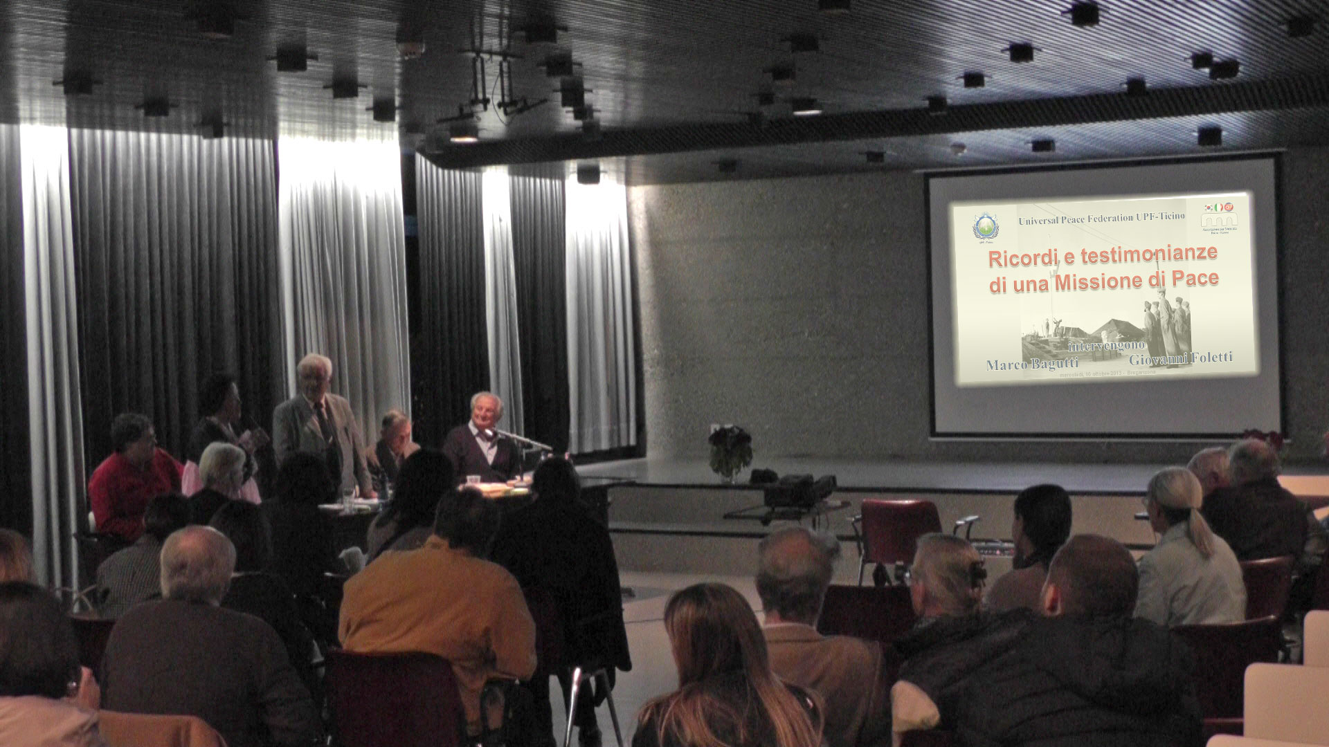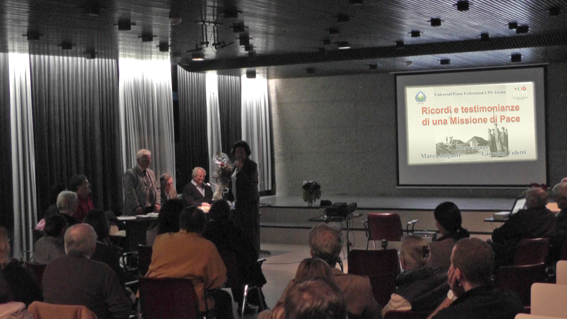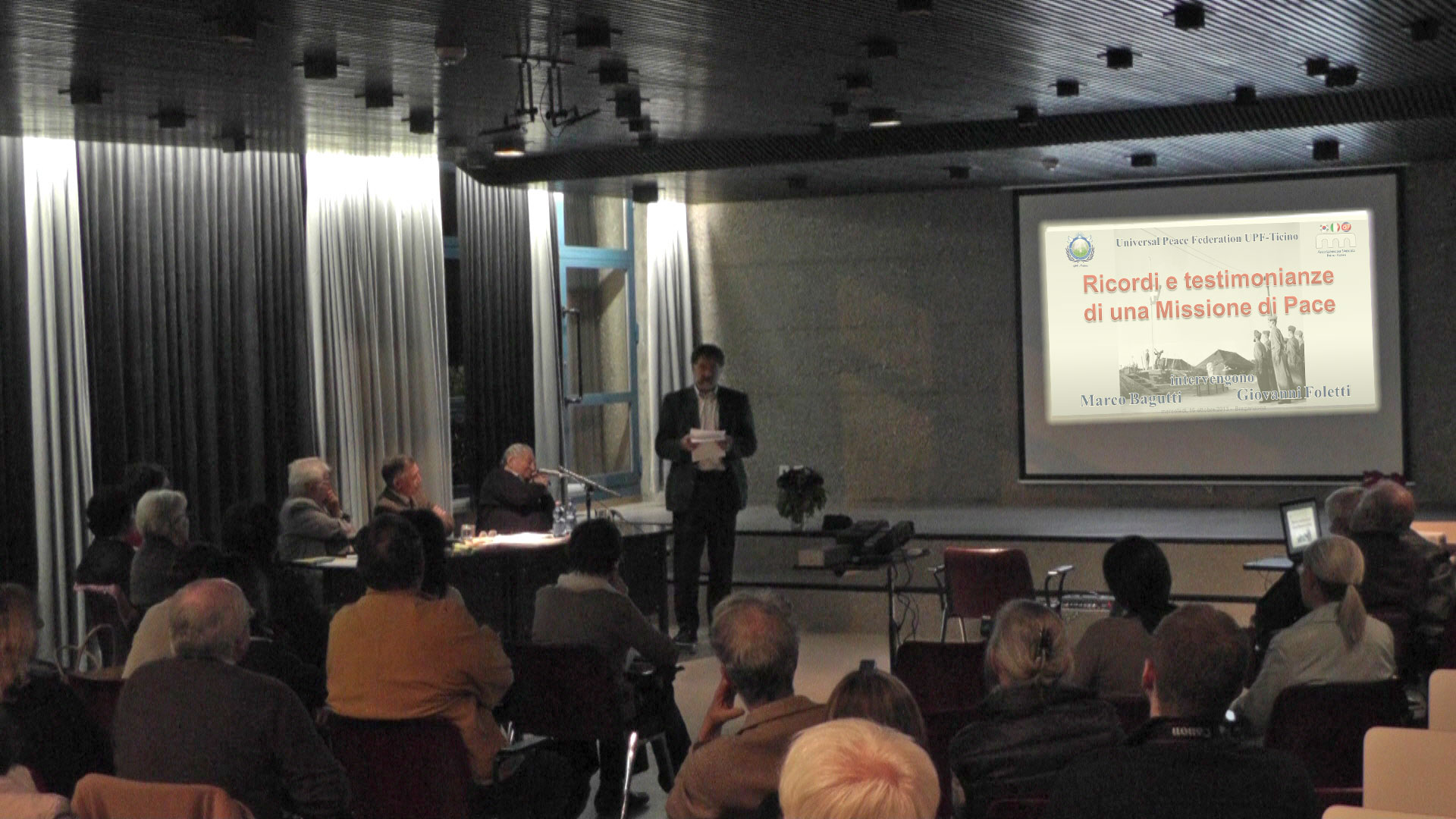 Giuseppe Termine, presidente dell'UPF-Ticino, ha introdotto la serata con un breve saluto e la spiegazione sulla missione e gli scopi dell'Universal Peace Federation.