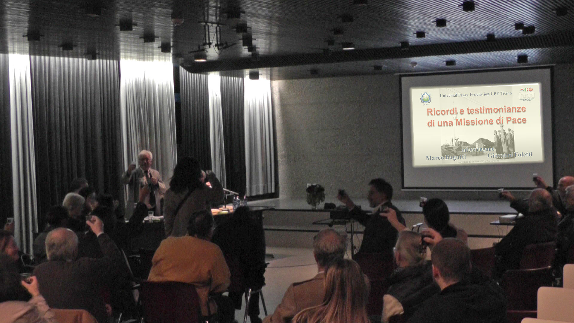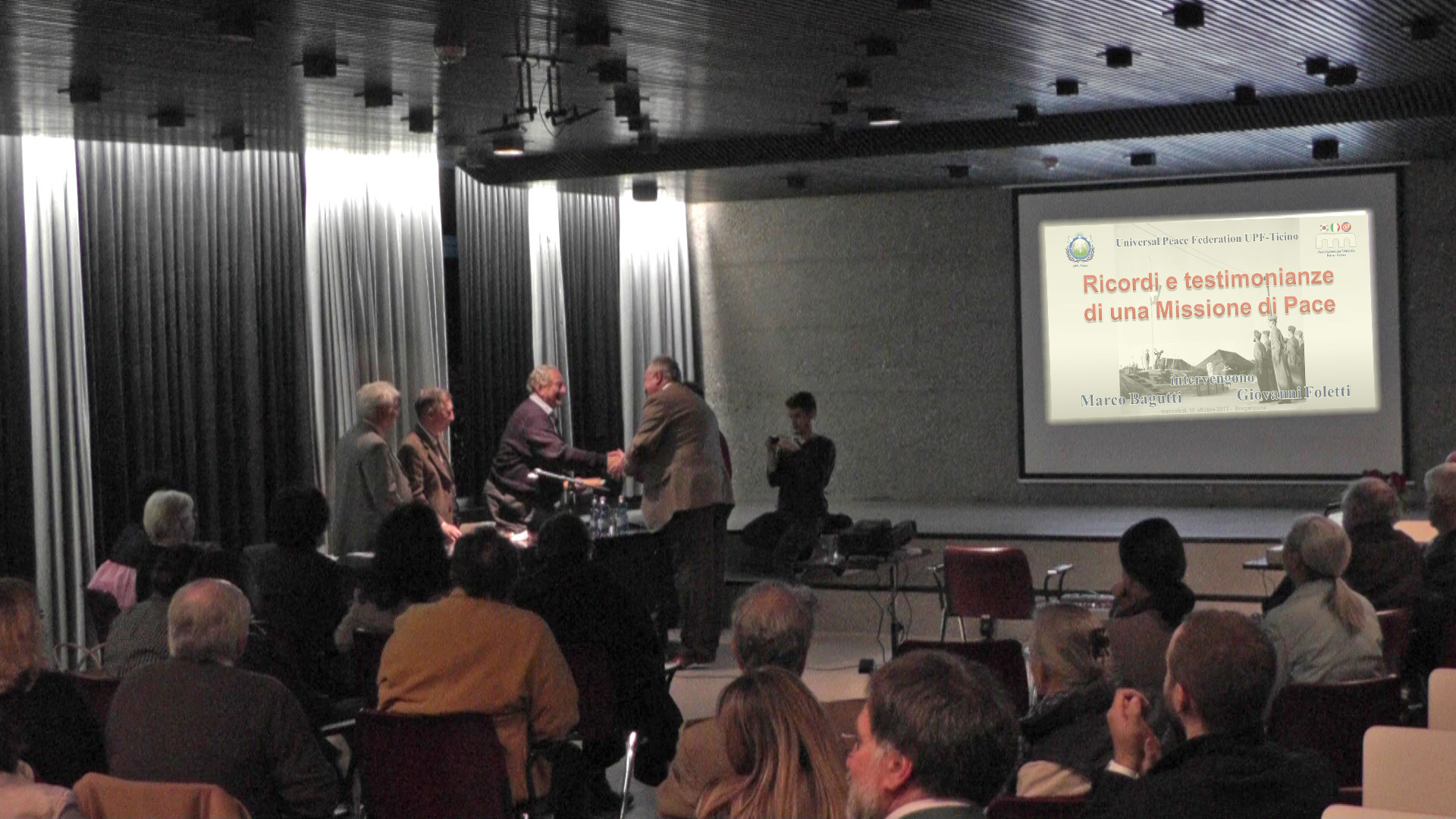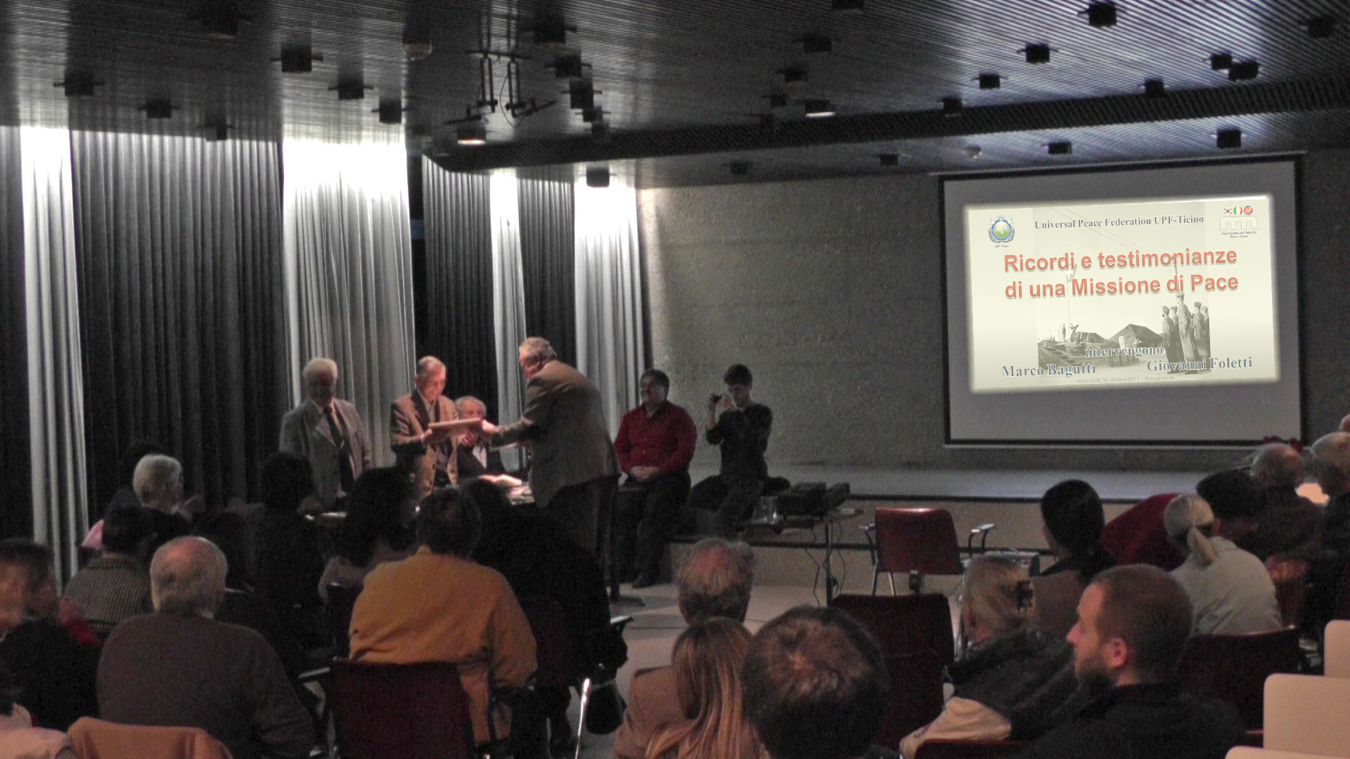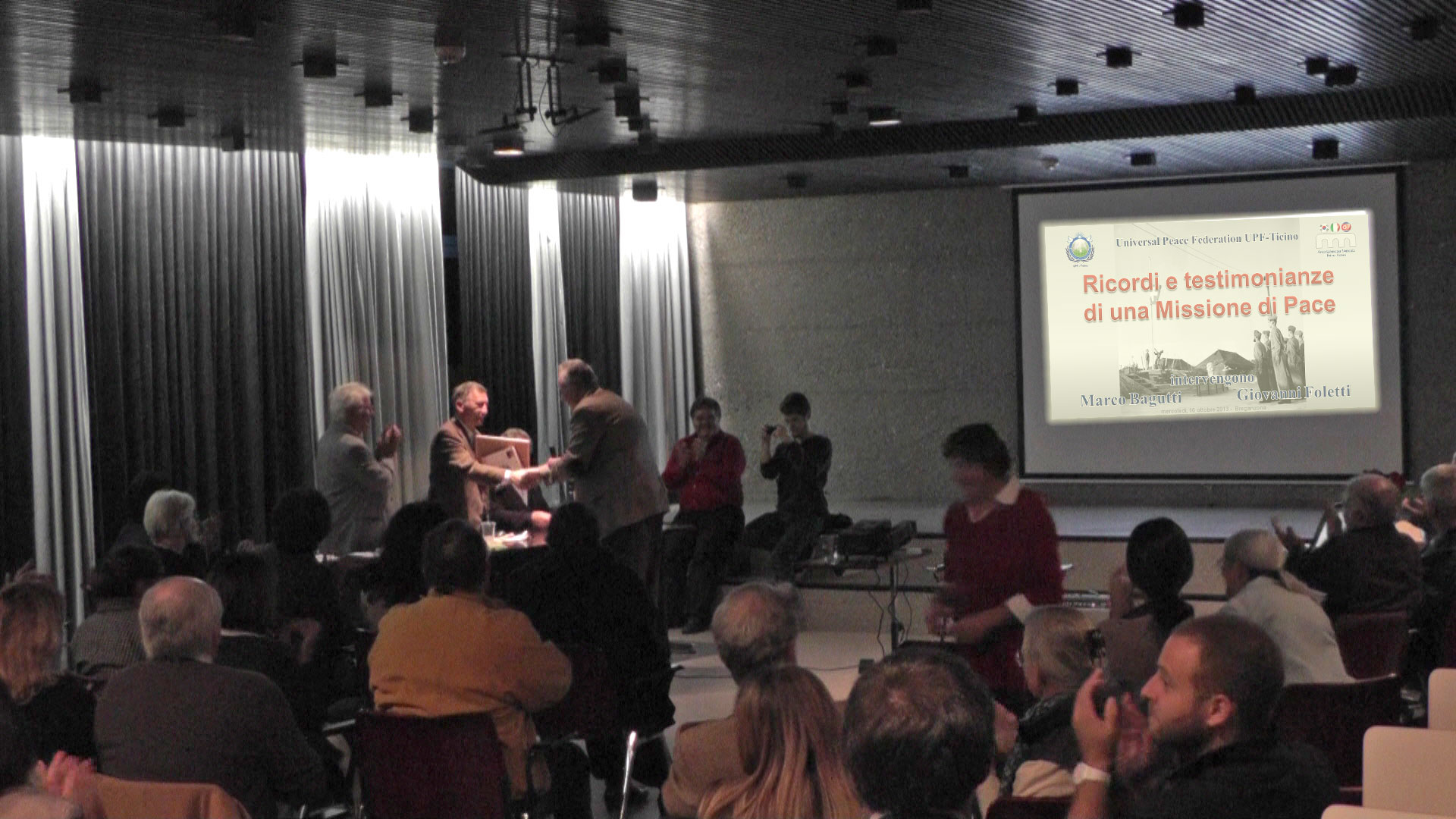 Heiner Handschin, presidente dell'UPF Svizzera, a fine serata ha conferito il certificato di "Ambasciatore di Pace" ad ognuno dei due relatori.