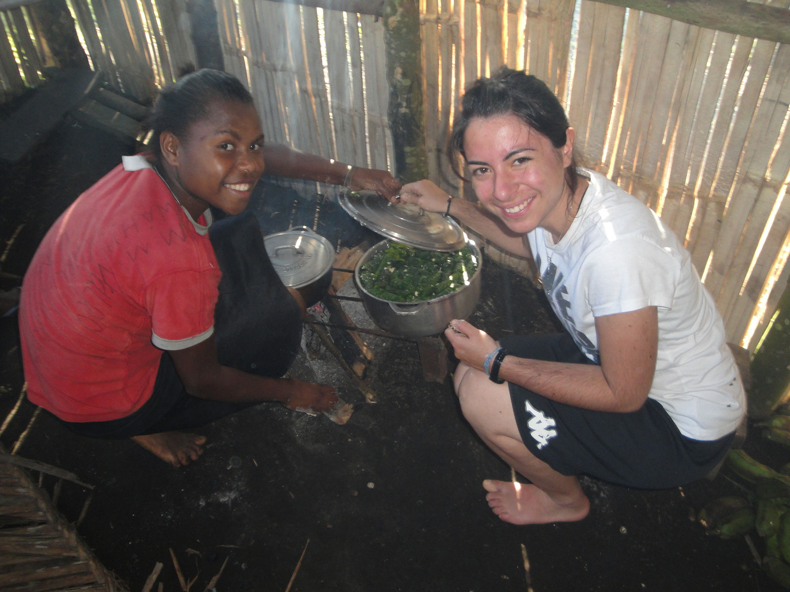 La mia esperienza in Vanuatu non sarebbe completa se non parlassi anche delle impressioni che mi hanno accompagnata per tutta la mia permanenza là. Non c’è niente che ci si possa già prefigurare laggiù. Ogni cosa è diversa, dal clima alle persone, dall’ambiente alla cultura. L’esperienza diventa ancora più intensa se si va nei villaggi, al di fuori della normale e conosciuta civiltà: si incontreranno persone che non avranno mai visto pelle bianca, ipod o psp.. molti di loro non hanno idea di come il mondo sia strutturato. Non sanno cosa sia Mc Donald’s. Non esiste elettricità, non esiste acqua corrente come li conosciamo. Nel caso di Lamnatu bisogna camminare dieci minuti nella foresta prima di raggiungere la fonte d’acqua più vicina, un massacro per gli abitanti più anziani del villaggio.