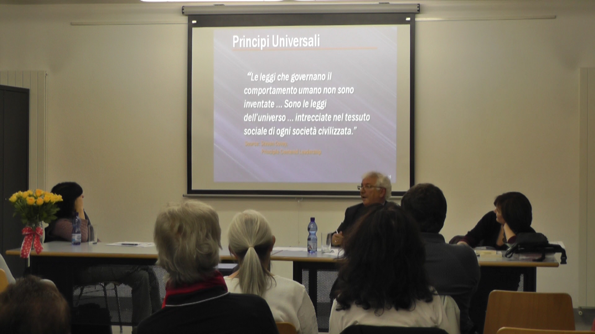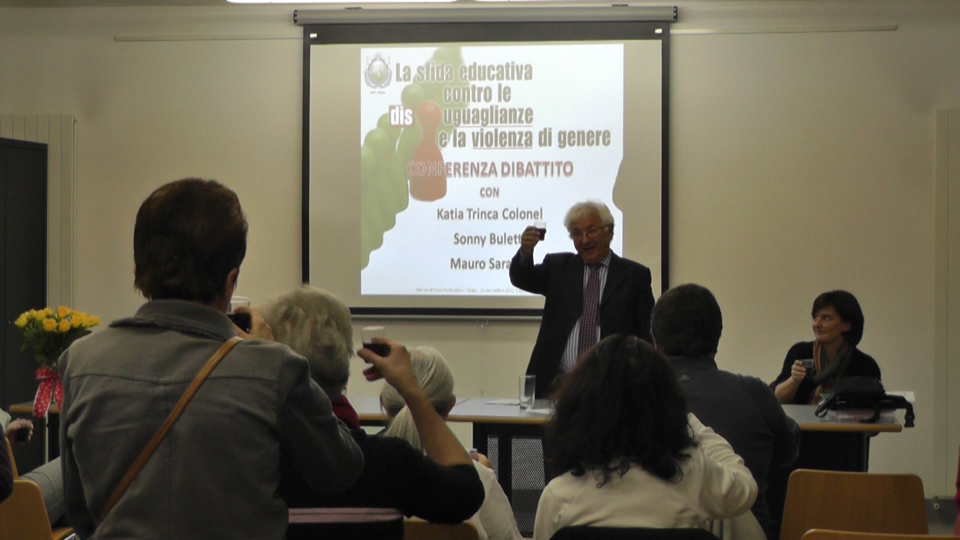 Siamo qui questa sera per contribuire alla costruzione di una civiltà, basata sul rispetto verso la donna. L’universo femminile è straordinario, esso ha molti volti: è figlia, sorella, amica, sposa, madre, nonna è molto altro. "La donna è l'altra metà del cielo" con questa sintesi perfetta, Mao Tze-tung definì la donna. Chissà, se veramente, nel pronunciarla, era consapevole del realismo e della compiutezza di una simile definizione. È significativo vedere le donne come una parte di cielo, ma allo stesso tempo sono un universo a sé stante, che sta attorno alla terra, vicino alla terra, si mescola alla terra, ed è inesauribile nelle sue risorse. Lascio la parola ai relatori.